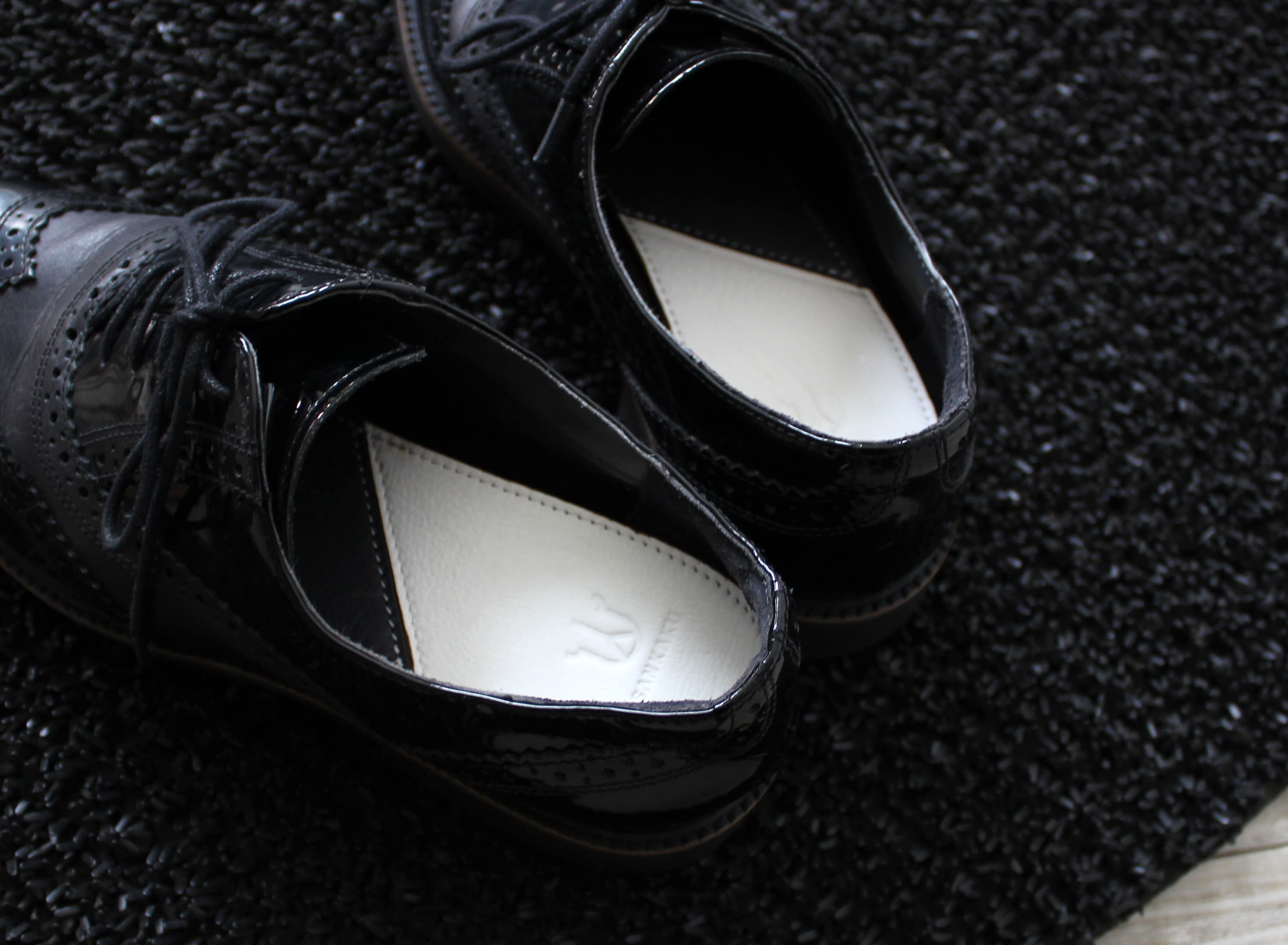 Shoe insoles that are made with luxurious muntjac leather and have excellent water absorption, quick drying, breathability, and water resistance.The moderate thickness has cushioning properties, and the design goes well with leather shoes.