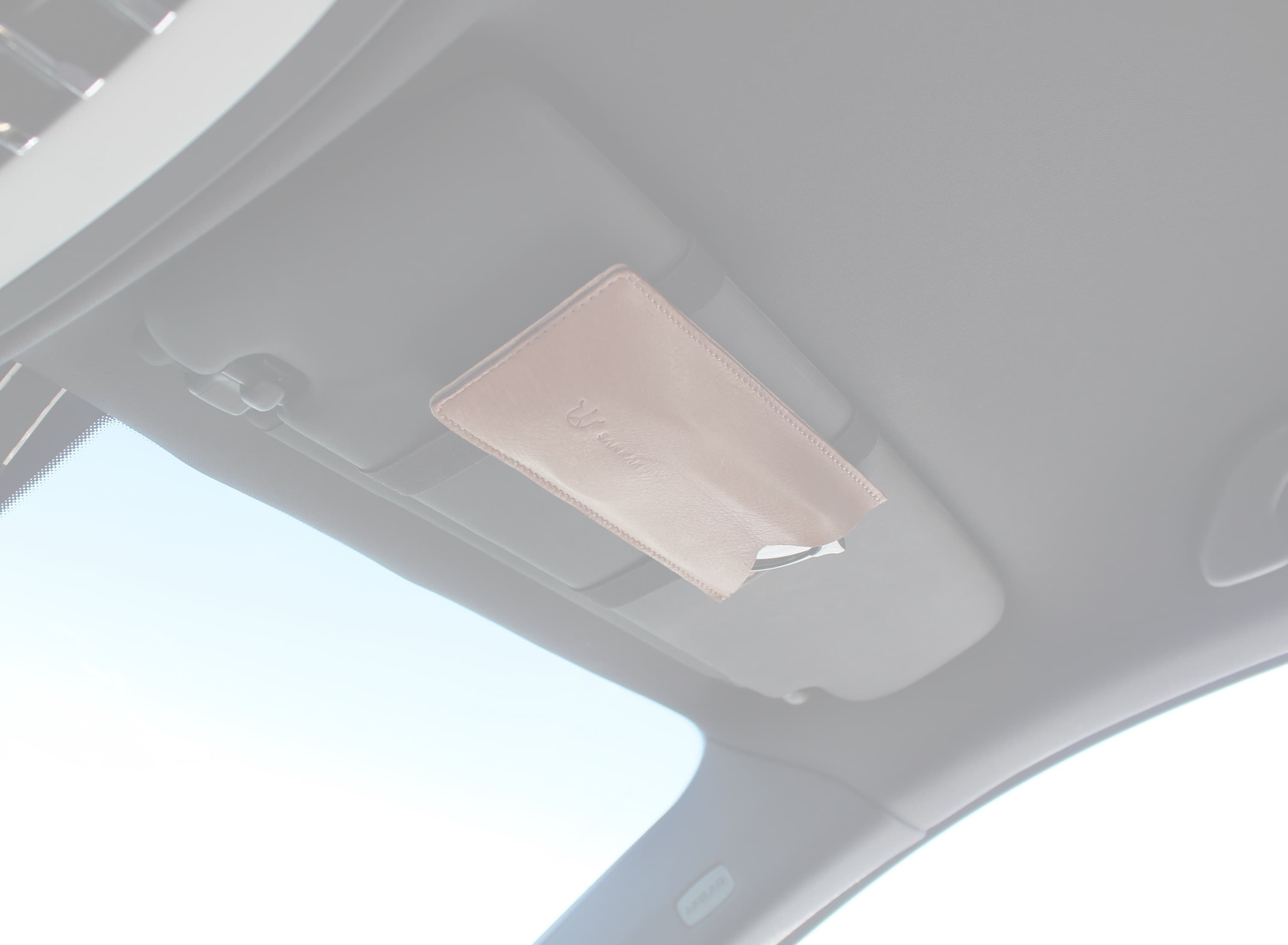 A car coaster that takes advantage of the water absorption and quick drying properties of muntjac leather and the thick cushioning properties of muntjac leather.